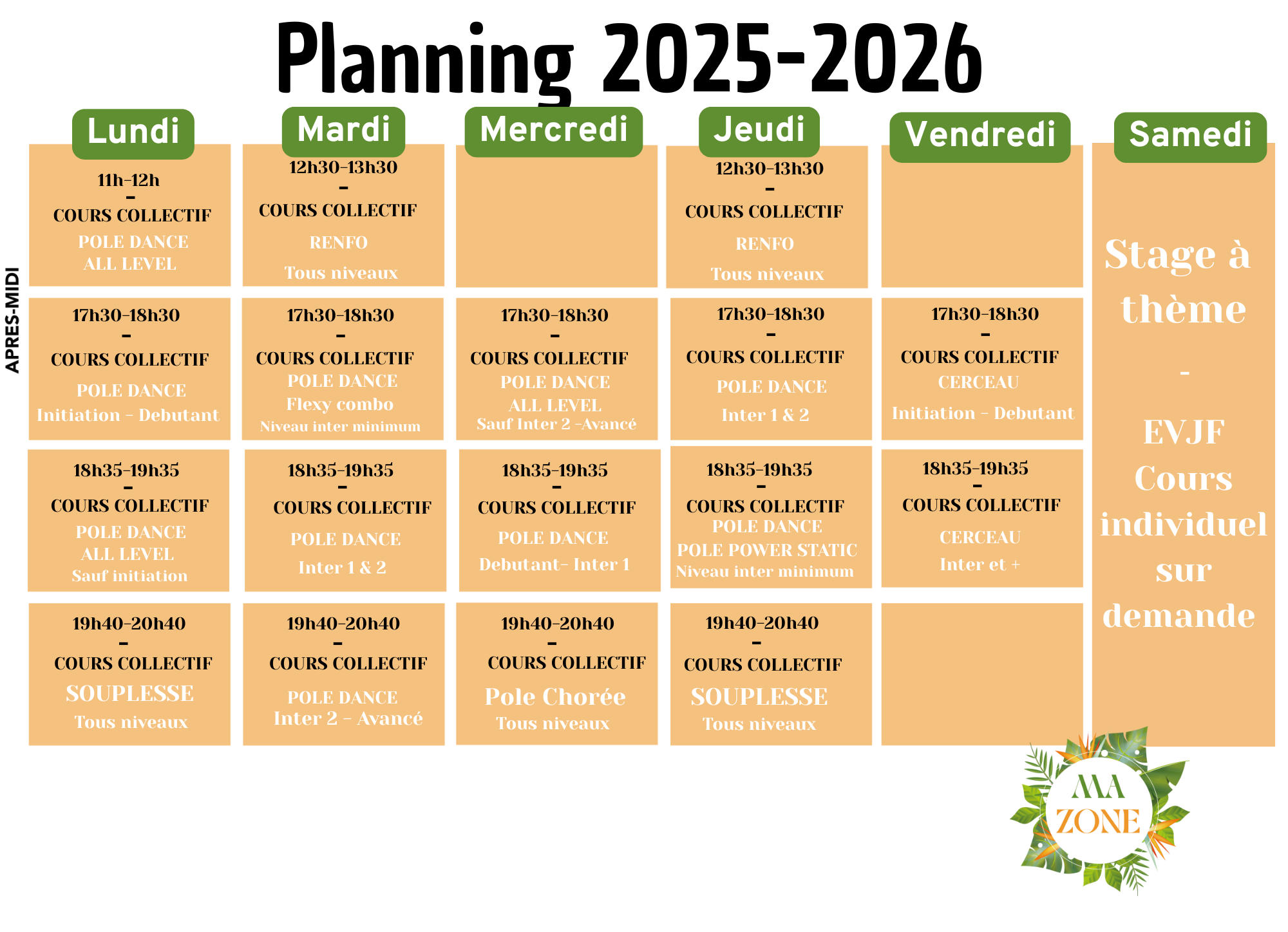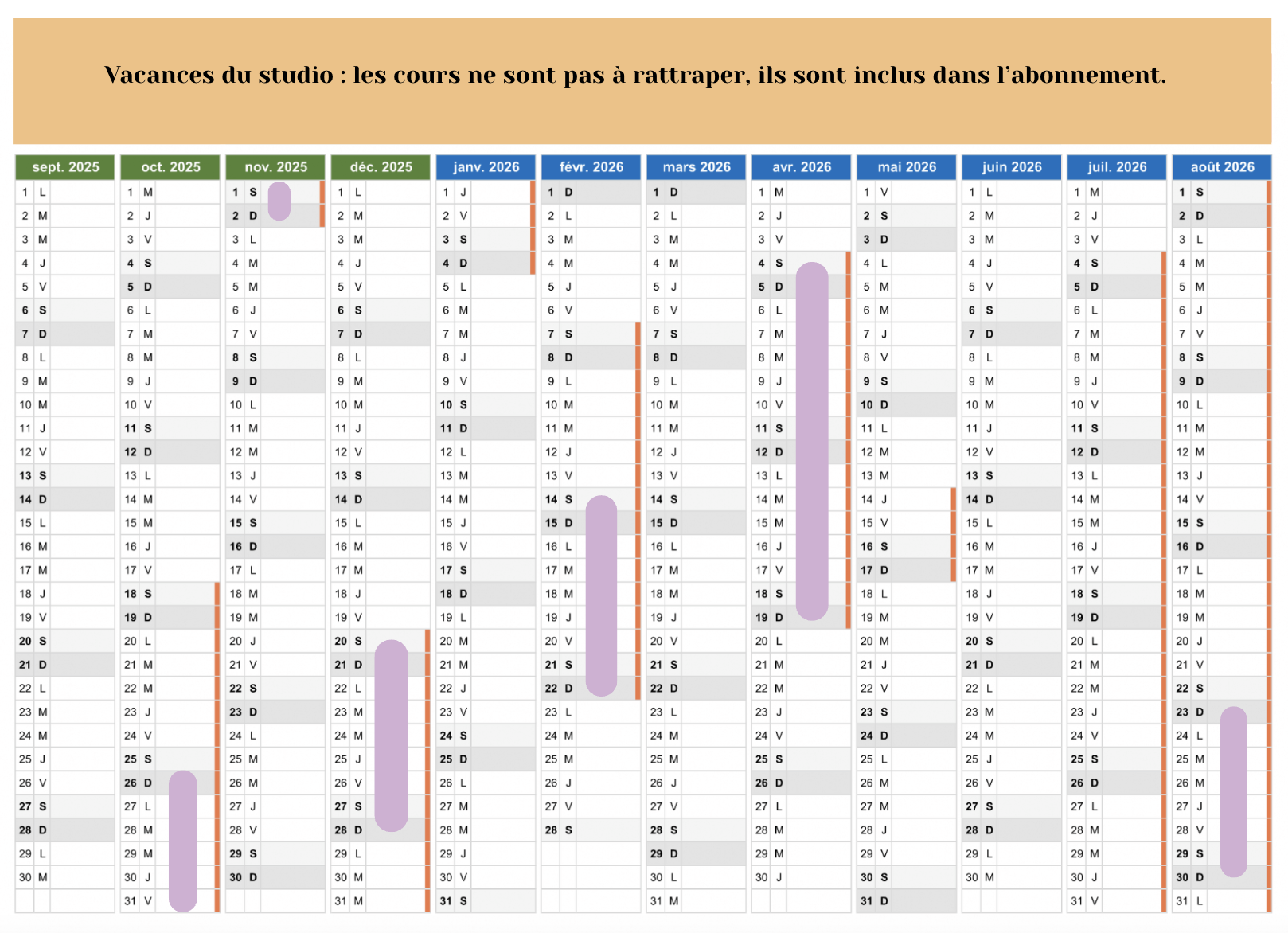 Le planning 2025 - 2026